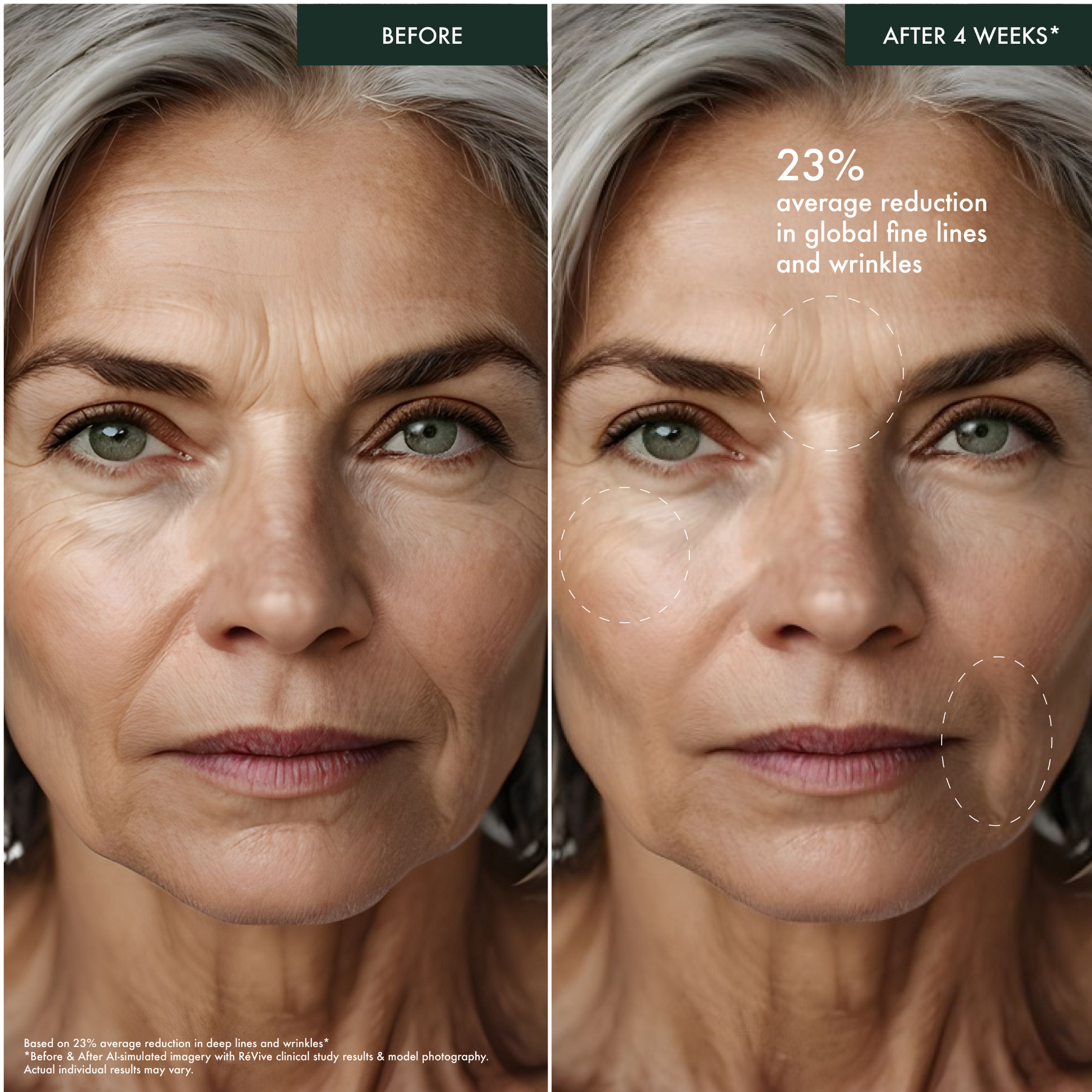 • 97% showed a visible reduction in deep lines and wrinkles by 23%